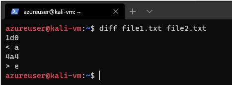 diff is a much more complex tool. It supports many output formats and has the ability to process large collections of text files at once. diff is often used to create diff files (patches) that are used by programs such as path to convert one version of a file or files to another version. Let's run diff on our same two files from before diff file1.txt file2.txt