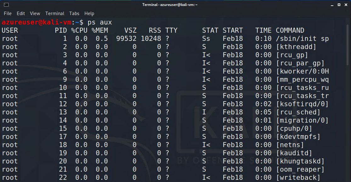 - COMMAND: The name of the command that started the process.