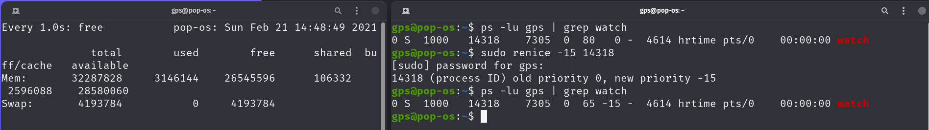 PIDthan the previous watch command. That's becausenicewill start a new process and not change an existing process. - With the nice command