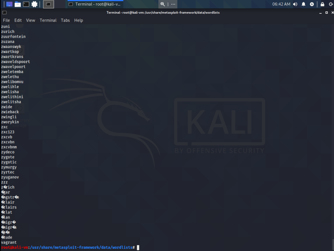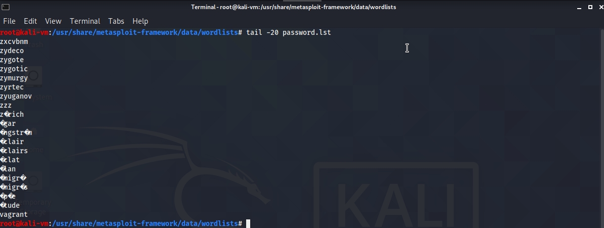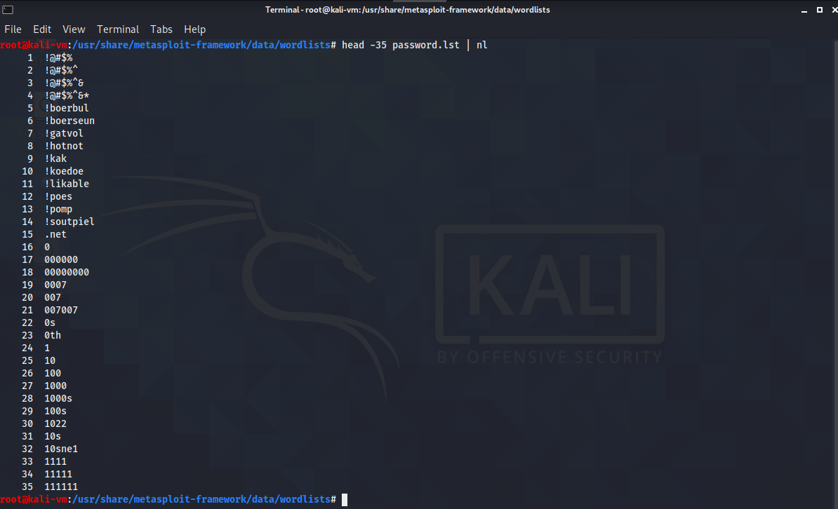 cat filecat /usr/share/metasploit-framework/data/wordlists/passwd.lst