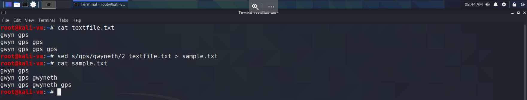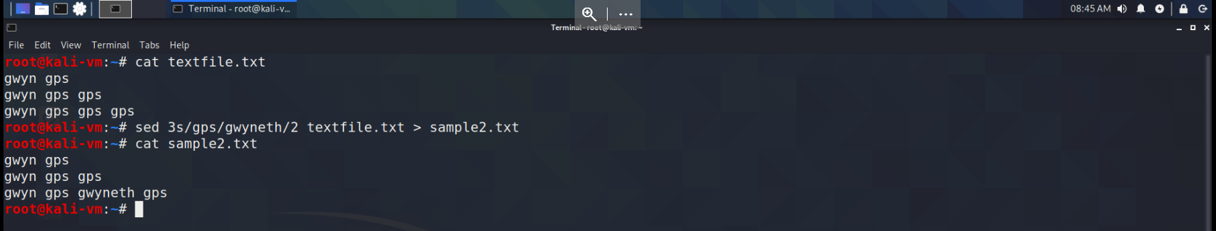 sed s/gps/gwyneth/2 textfile.txt > sample.txt